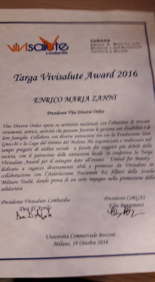 – Vivisalute Lombardia Conferisce; Ambasciatore della Disabilitร